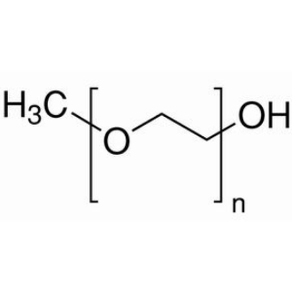 聚乙二醇单甲醚的化学结构主要由乙二醇单元(即-O-CH₂-CH₂-O-)通过醚键连接而成,且一端以甲氧基(-OCH₃)封端。其通式可以表示为HO-(CH₂-CH₂-O)ₙ-CH₃,其中n代表聚合度,即乙二醇单元的重复次数,它决定了聚乙二醇单甲醚的分子量大小。